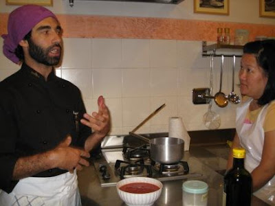 This evening we went to our cooking class. I was a little irritated by 2 sets of our co-team mates. By the end of the evening, I was exchanging email address and business cards with everyone with promises to send photos out to all. We had a mother/daughter couple who were visiting from the phillipines; a newlywed from Norway (she kept tasting EVERYTHING as we were preparing stuff…i don’t know this woman…how sanitary IS this???); and a taiwanese lady (who was a bit bossy and asked a million questions).