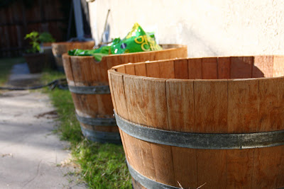 So I’m willing to bet you can guess what I did this weekend. Yeah. I gardened. When I say “gardened”, I mean I bought some crap and repotted it. That’s about as fancy as I get. But what’s crazier is that I bought 3 half wine barrels to use as a planter (thank you, craigslist). They are so beautiful – and Gregory, the guy who sold them to me, brought them down from Napa and carried about 20 of them up the steepest set of stairs (and 3 back down for me!). If only I wasn’t too lazy to lift the 50 pound barrels to see what wineries they were from. I’m giddy that I have them but seriously…these things are HUGE!!