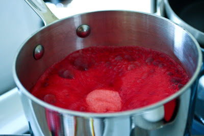I cooked up a batch of Raspberry jam mostly because I just like the deep red color and partly because my boss had specified that he liked raspberries. I had two requests for chocolate cake – one from my boss and the other from my boss’ boss (Jack). I decided to go with a white cake instead. (For those who are wondering – yes, this is EXACTLY what it’s like to have me as an employee…)