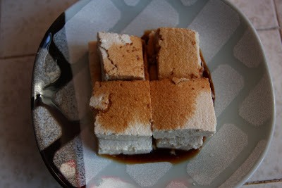 It didn’t look pretty, but I promise you, it tasted GREAT! Tofu that I buy in stores, even the fresh ones, always tastes like nothing. This tofu had a wonderful nutty taste and was so soft and delicate. It soaked up my shoyu quite well and made for a very yummy dinner tonight!